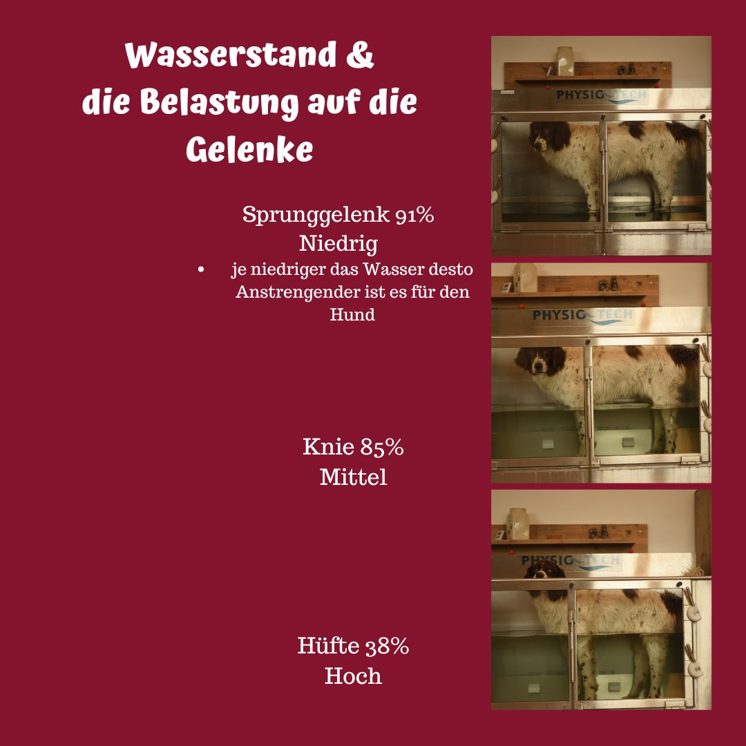 - Der hydrostatische Druck, der den Hund im Wasser gleichmäßig gibt, wirkt auf die Atmung und den Kreislauf und zusätzlich als Druck auf den Hund. So kann z.B. Ödemen (Flüssigkeitsansammlungen im Gewebe) oder Schwellungen entgegengewirkt werden.