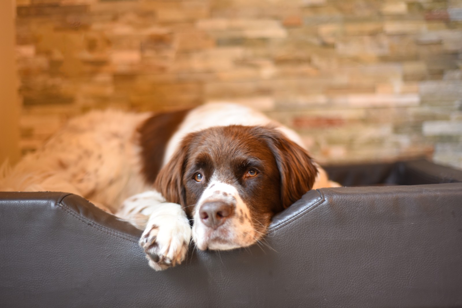 Achte auch auf einen bequemen, warmen Schlafplatz, am besten ein orthopädisches Hundebett, aus dem dein Hund leicht wieder aufstehen kann.