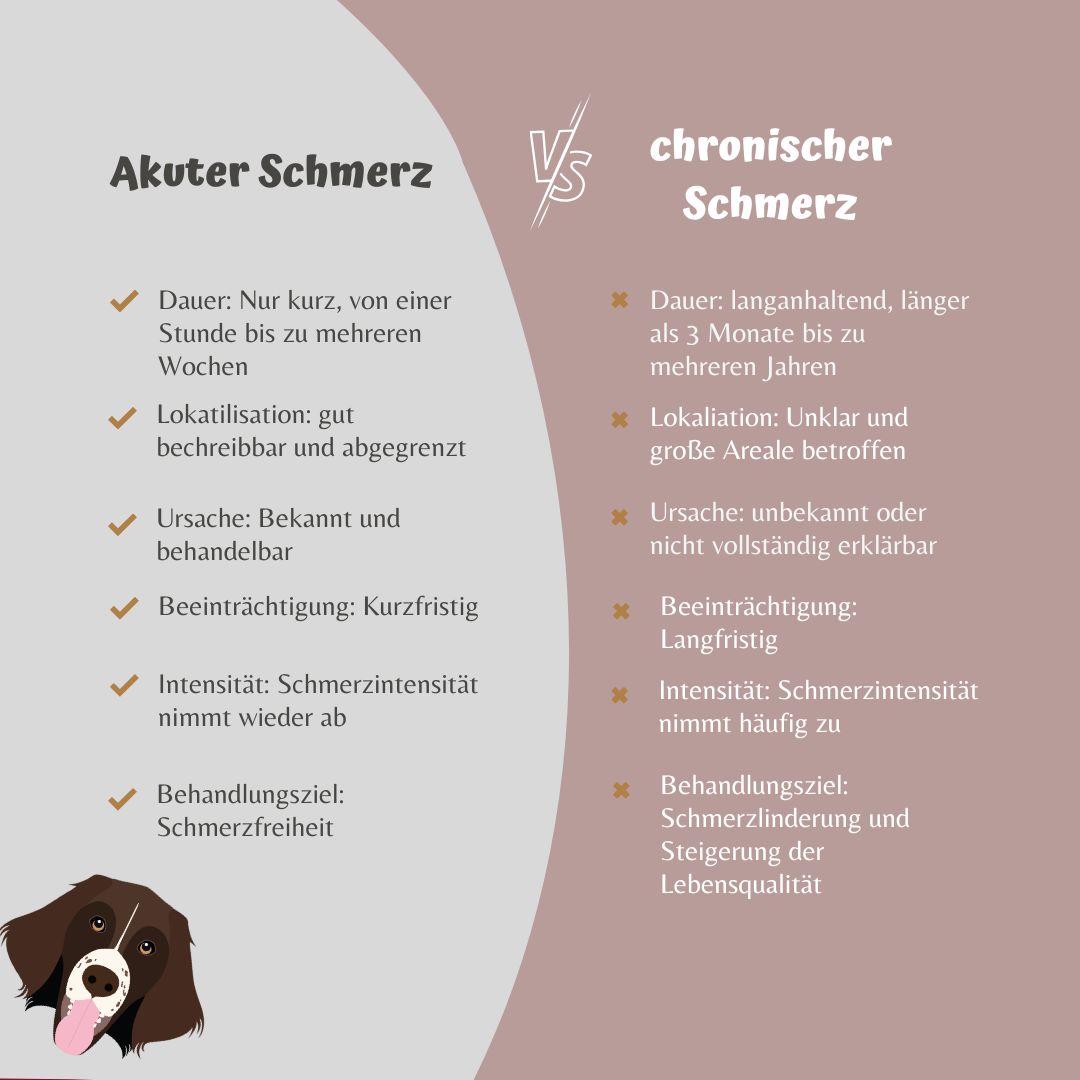 Bei Verletzungen treten akute Schmerzen auf, die die Bewegungen beeinträchtigen können. doch selbst nach dem Abheilen de Verletzung kann es sein, dass der Hund sich immer noch so verhält als das er Schmerzen hat.